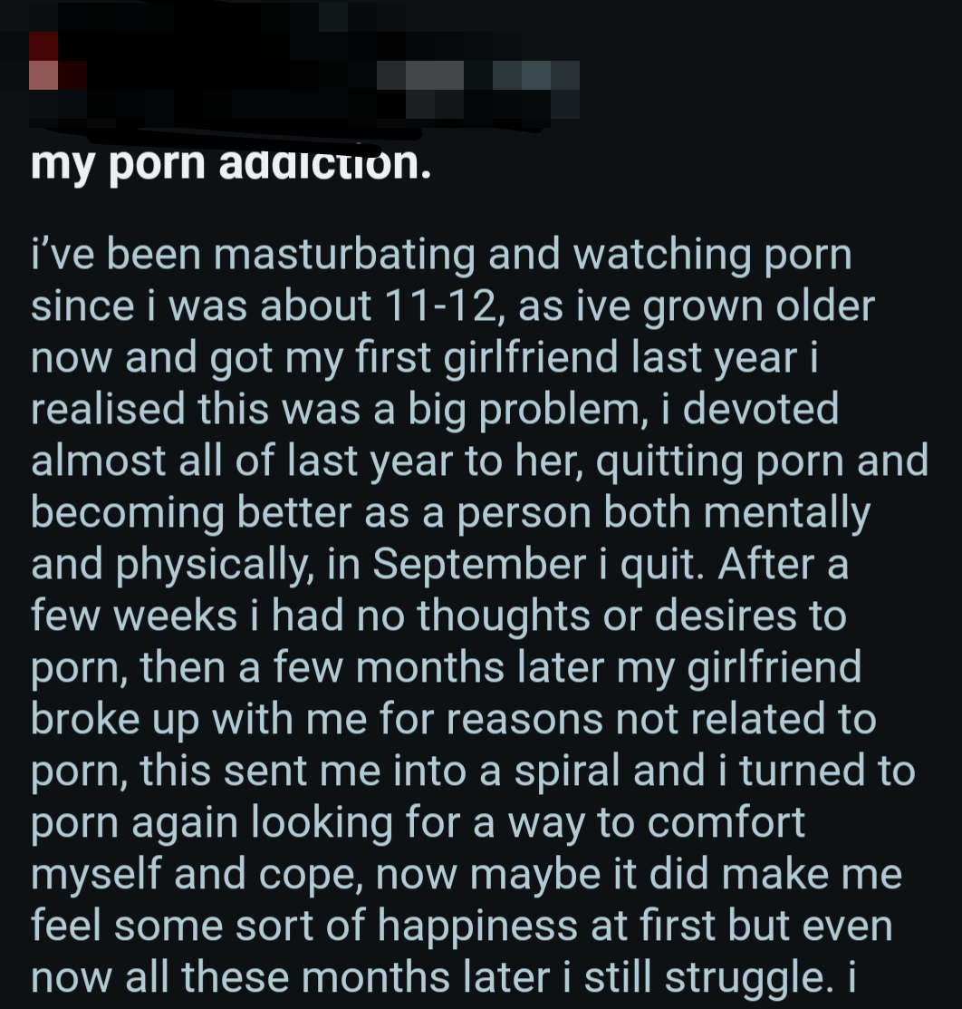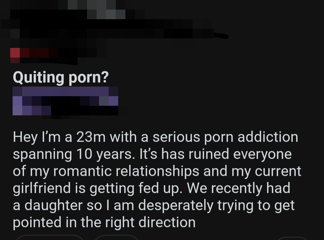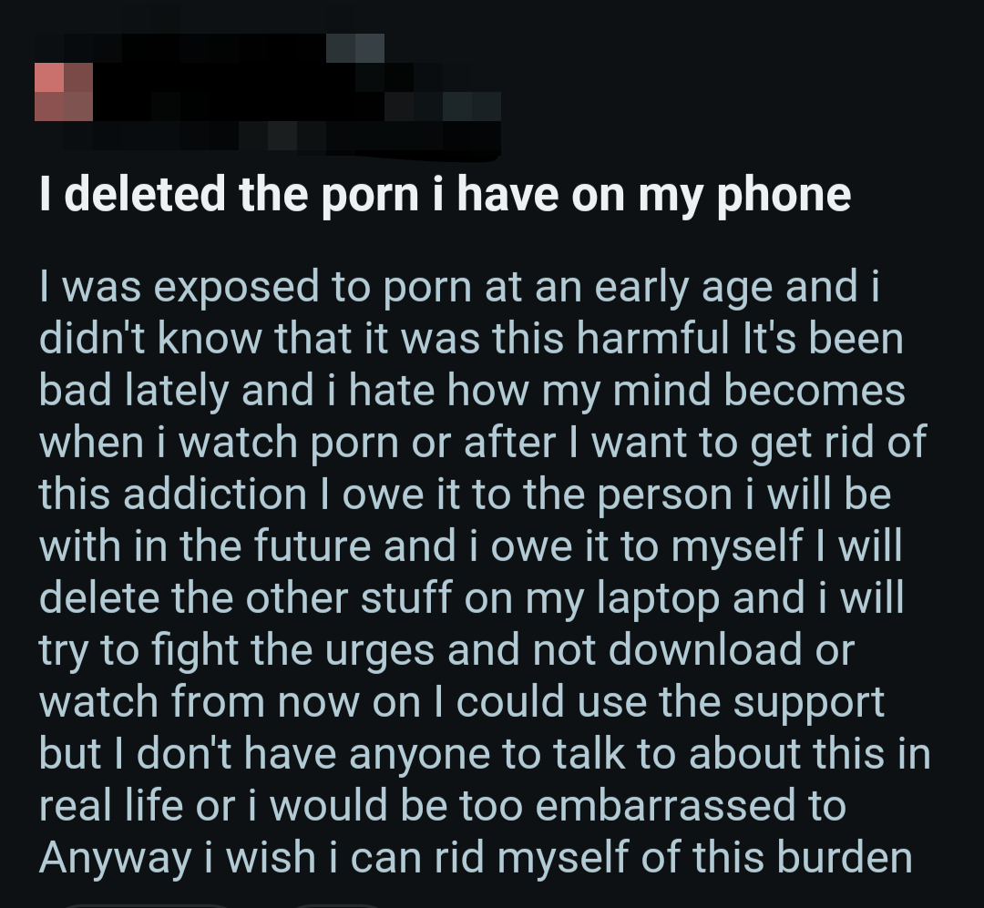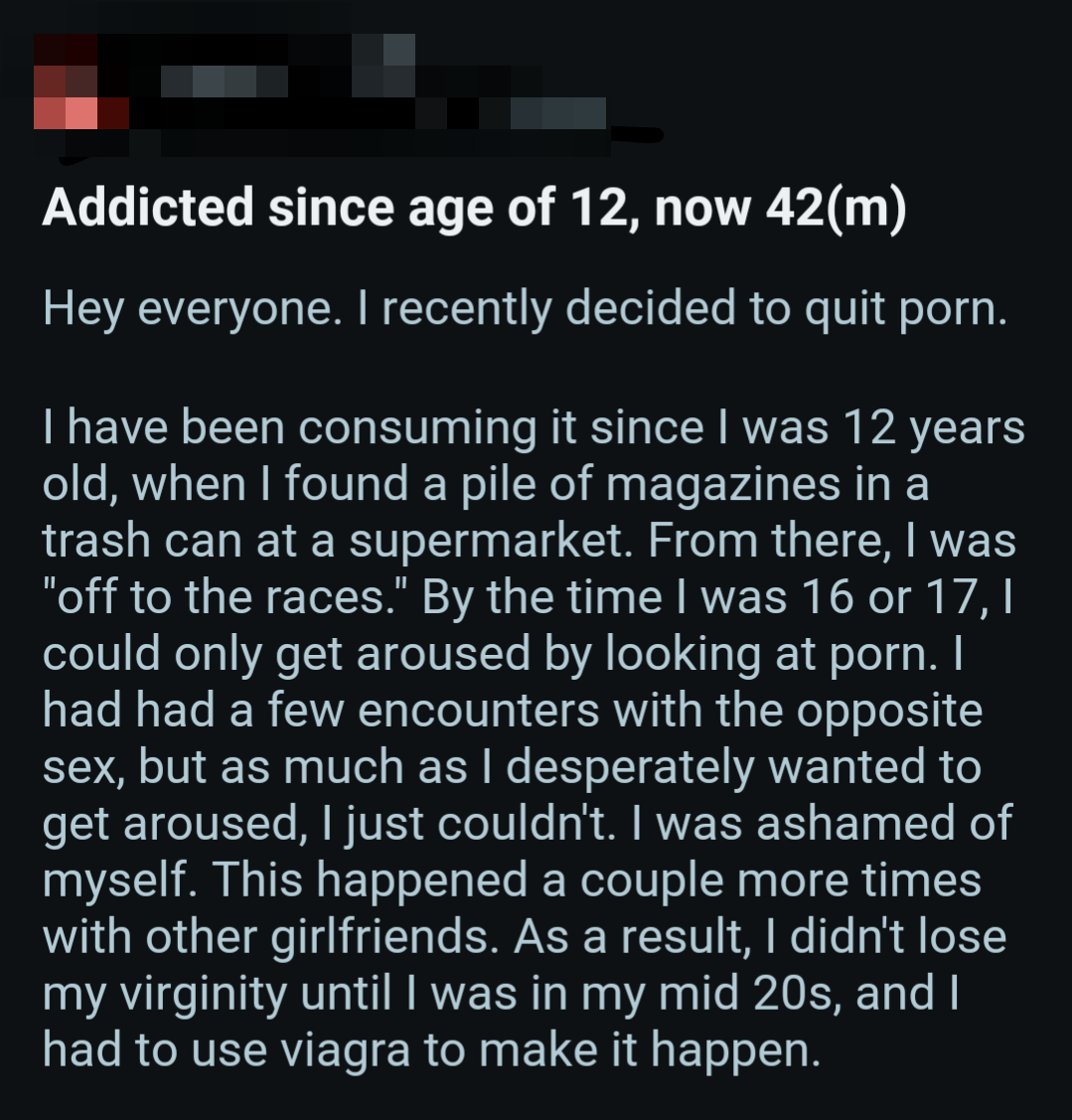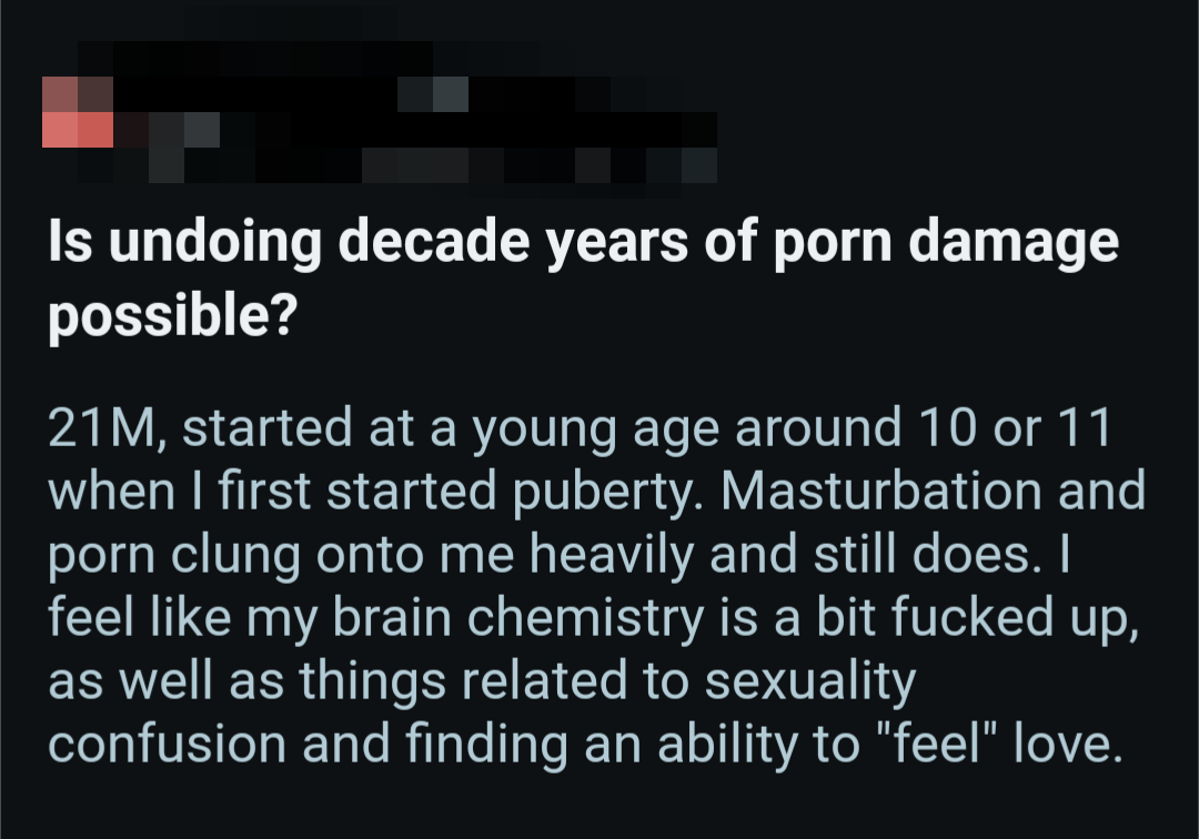 So once again, here's a bunch of screenshots from various Reddit outlets that detail the harms pornography does to them.