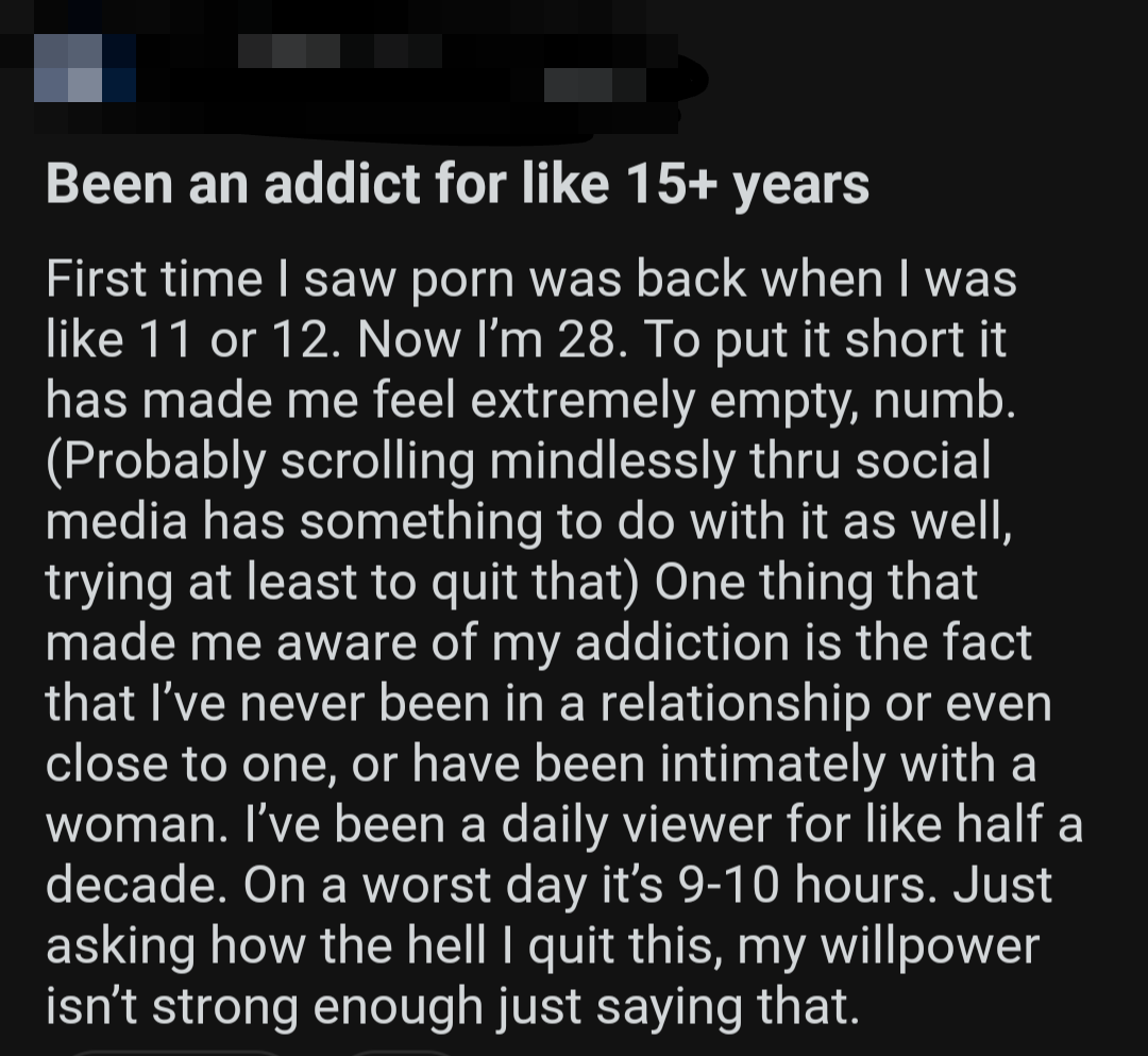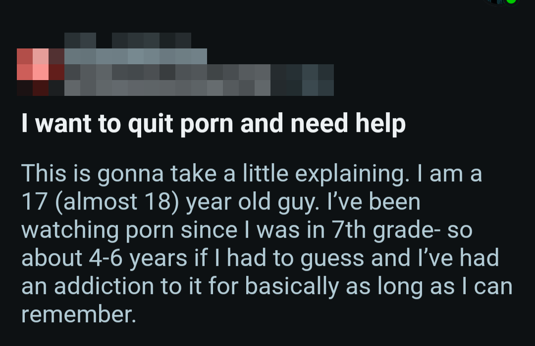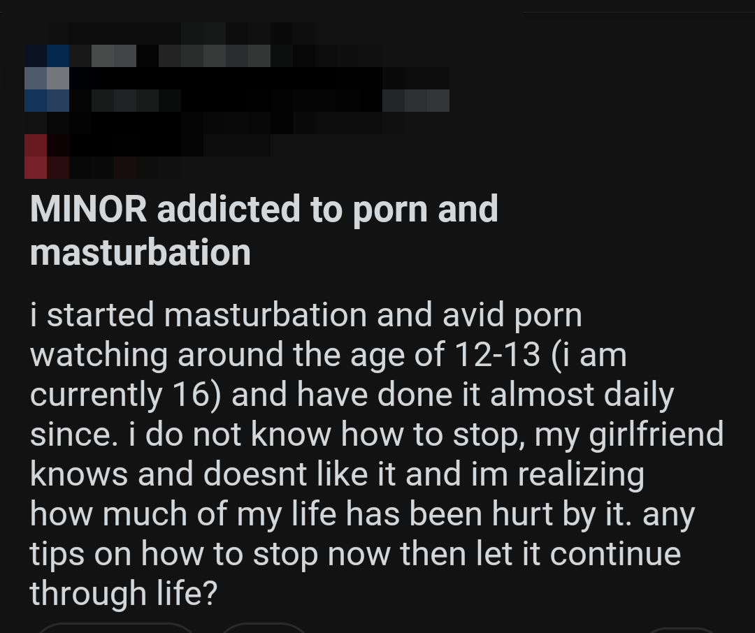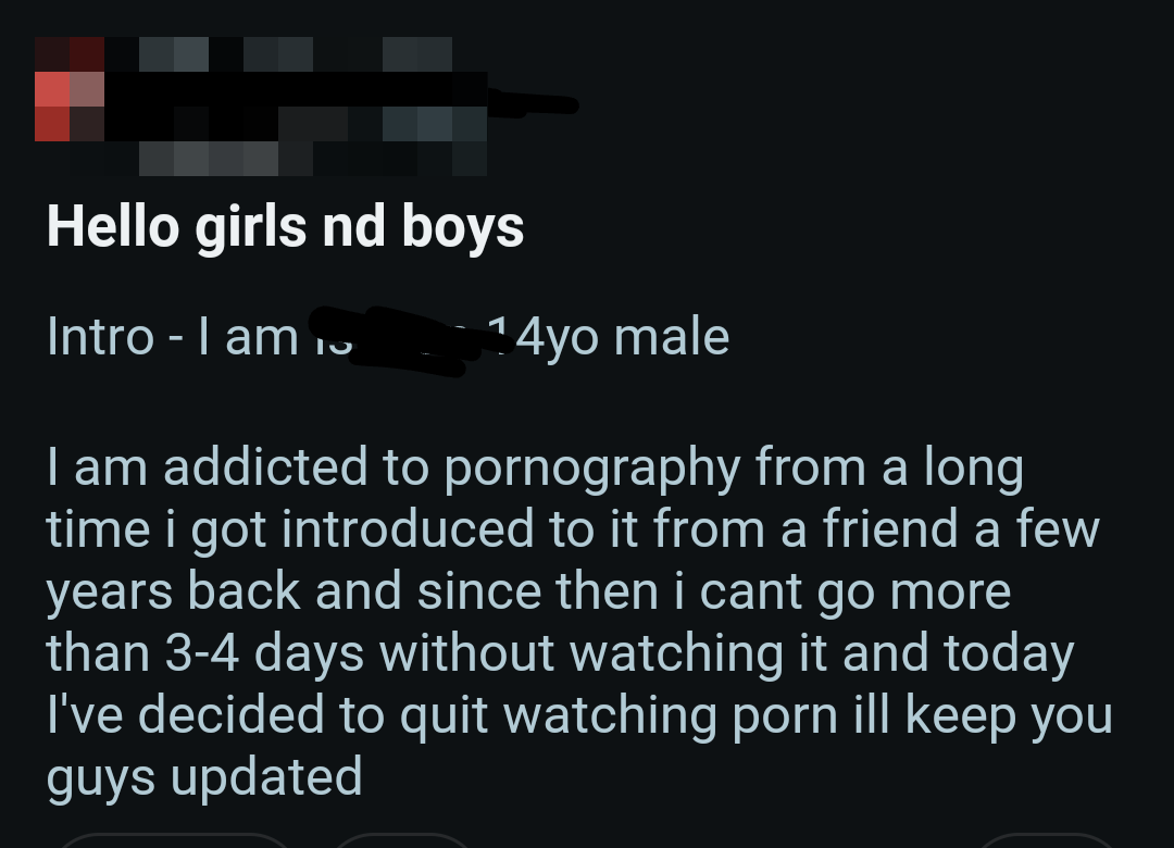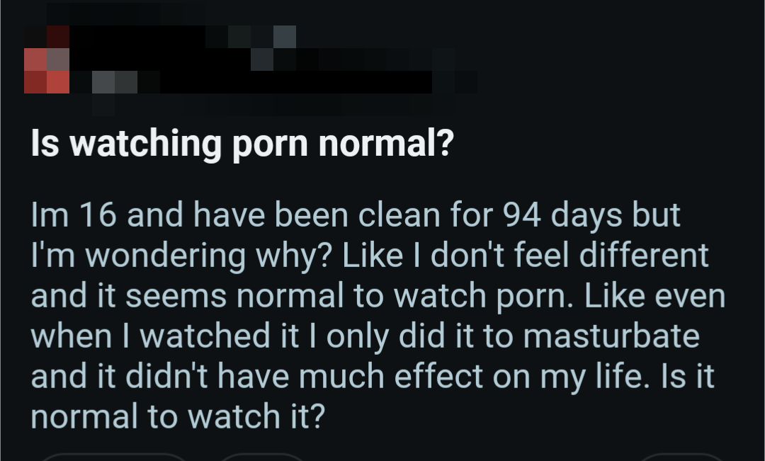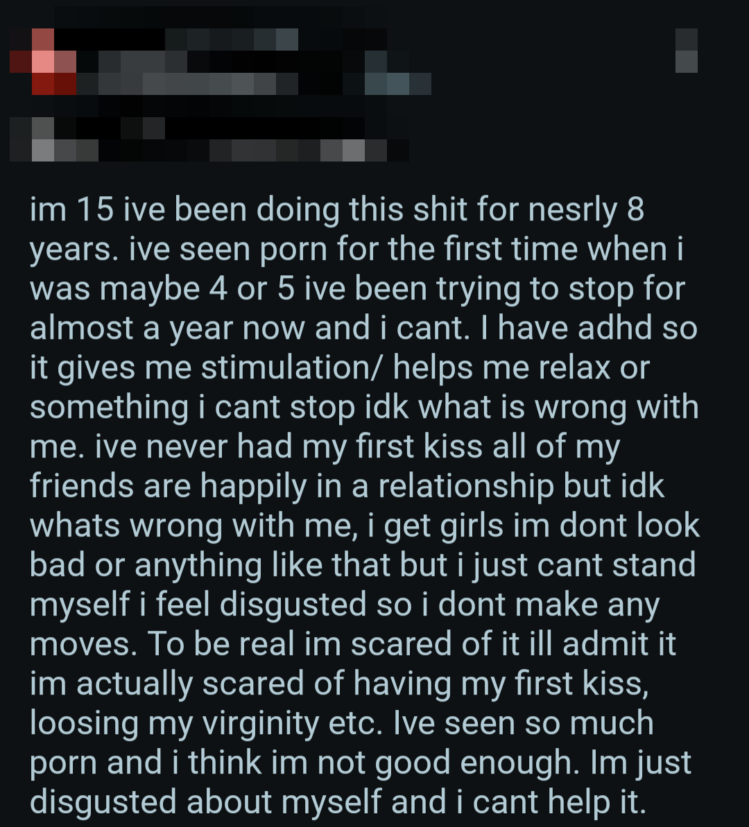 So once again, here's a bunch of screenshots from various Reddit outlets that detail the harms pornography does to them.