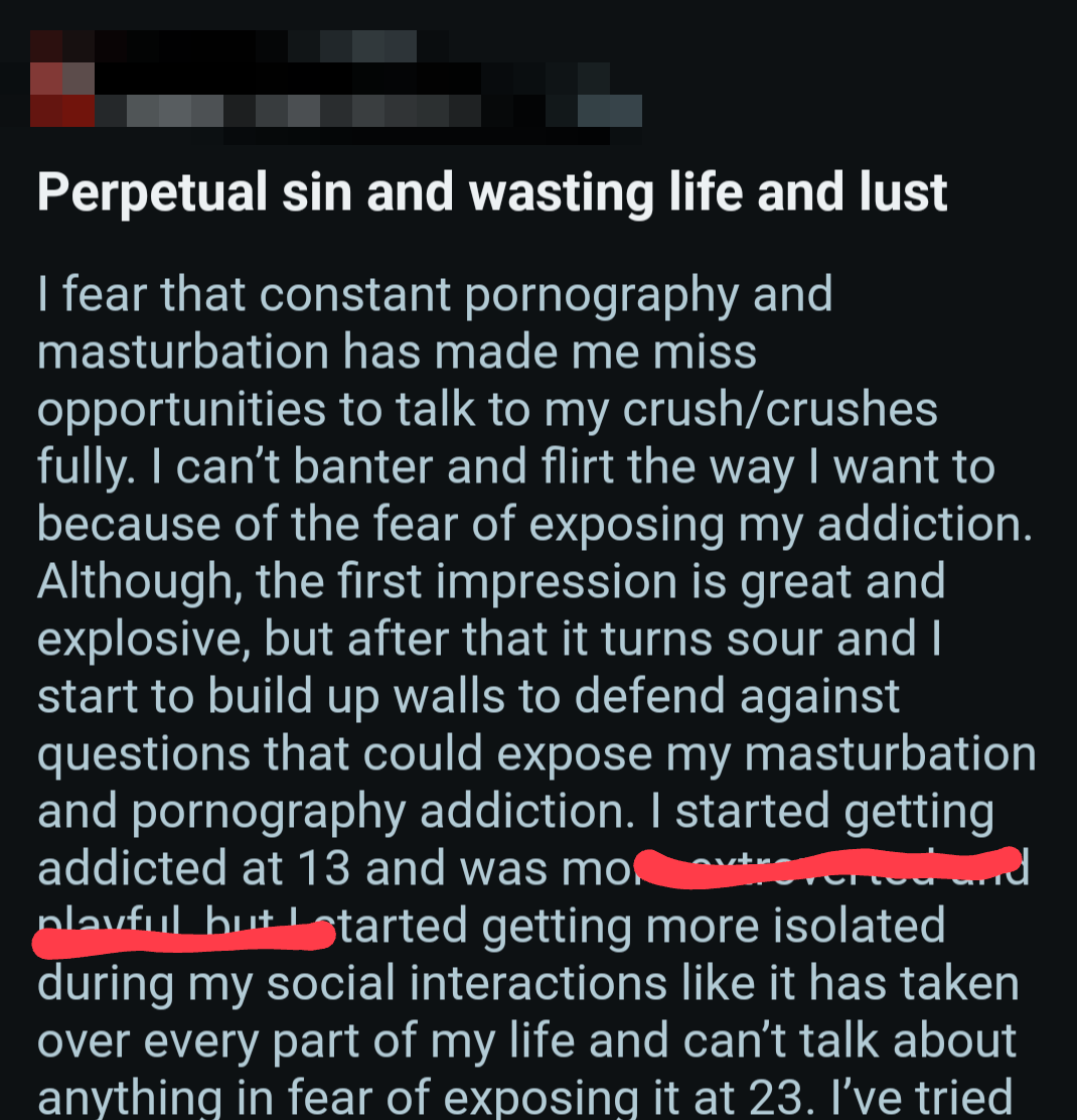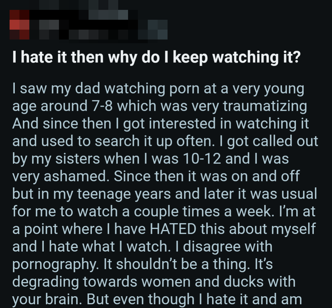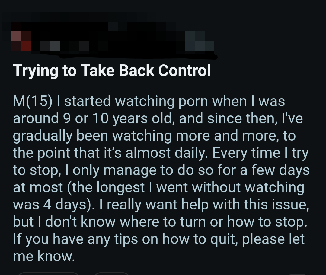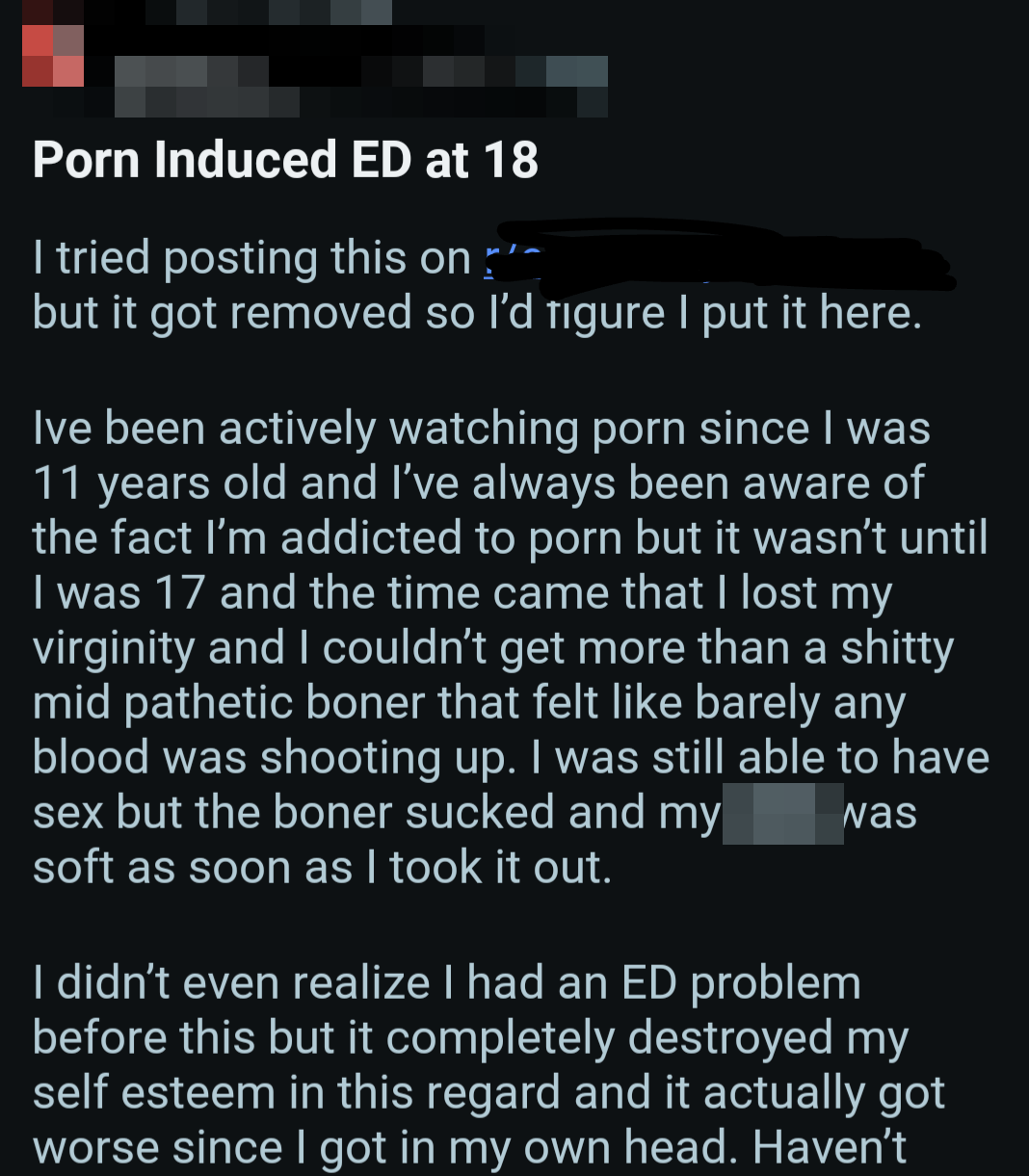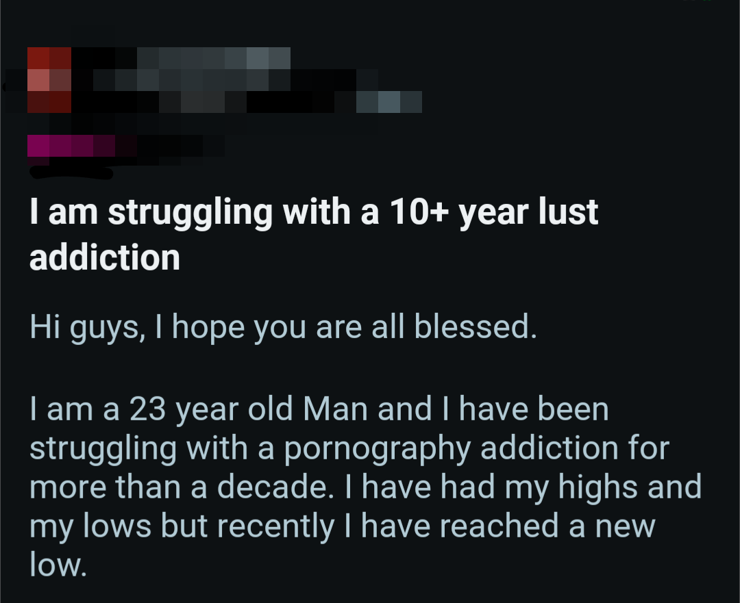 So once again, here's a bunch of screenshots from various Reddit outlets that detail the harms pornography does to them.