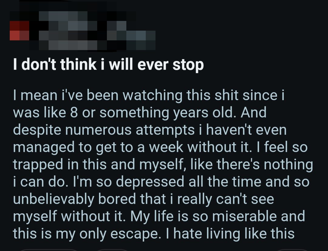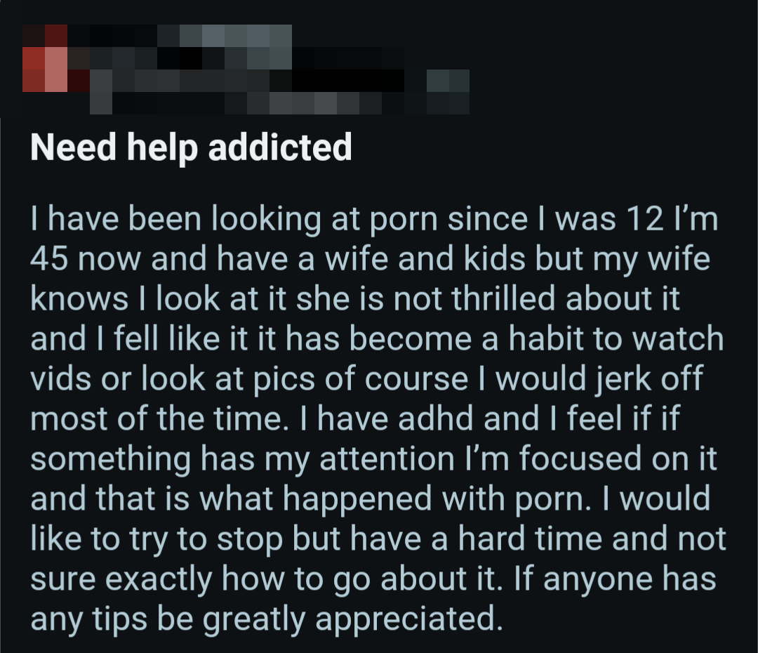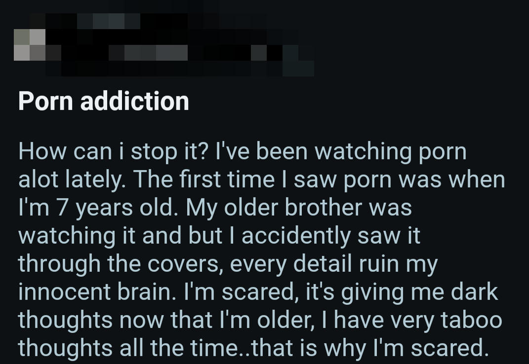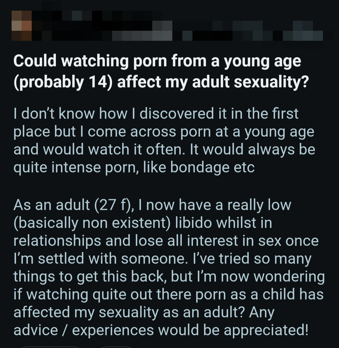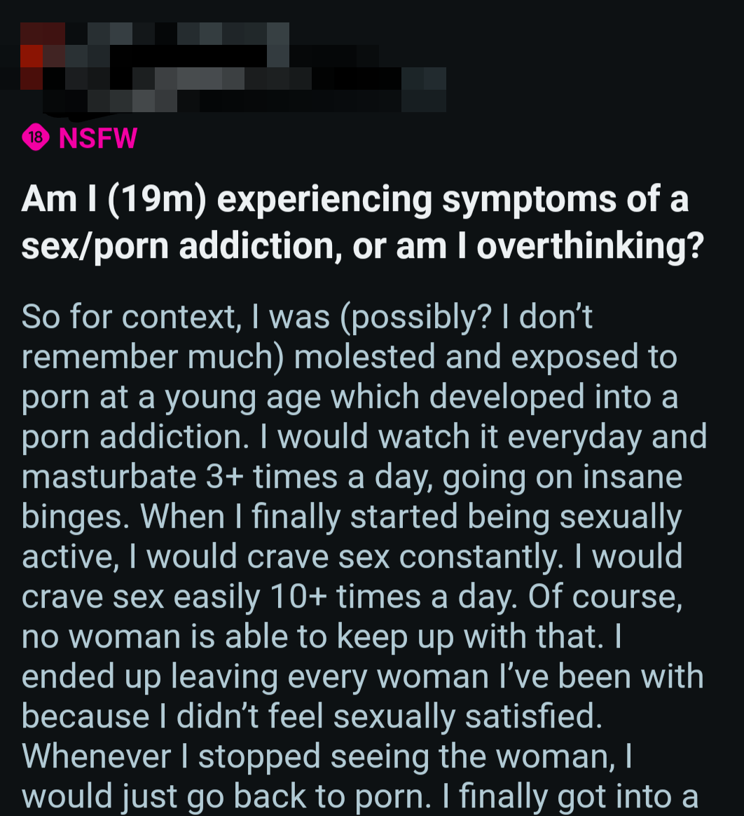 So once again, here's a bunch of screenshots from various Reddit outlets that detail the harms pornography does to them.