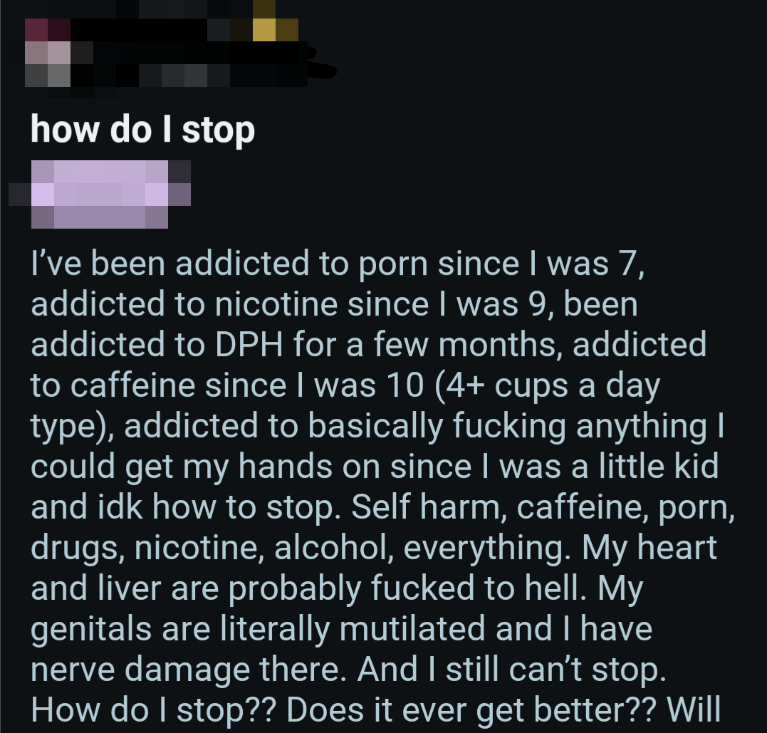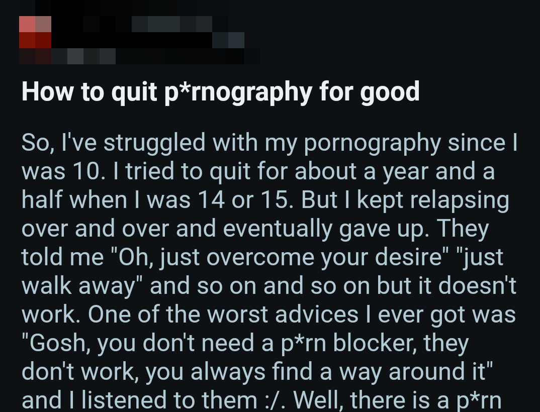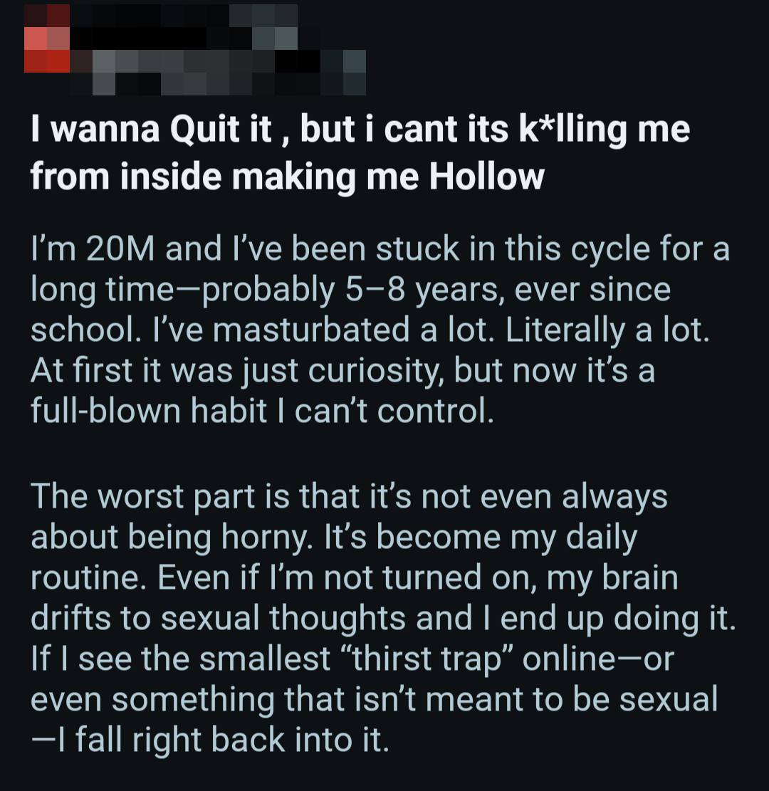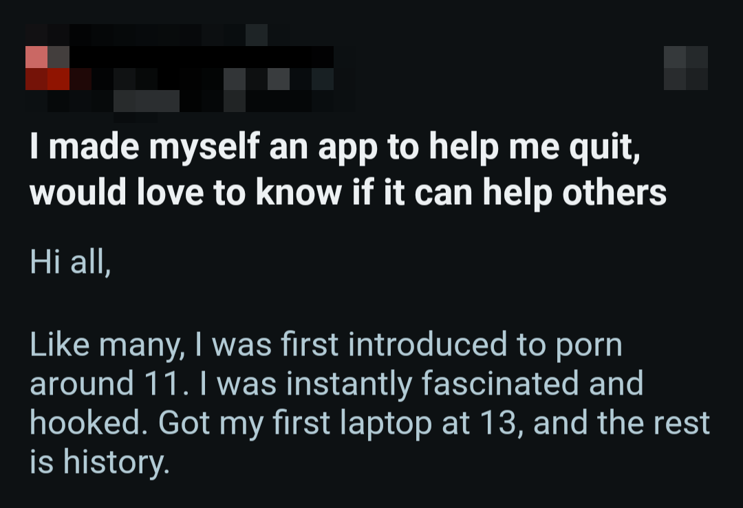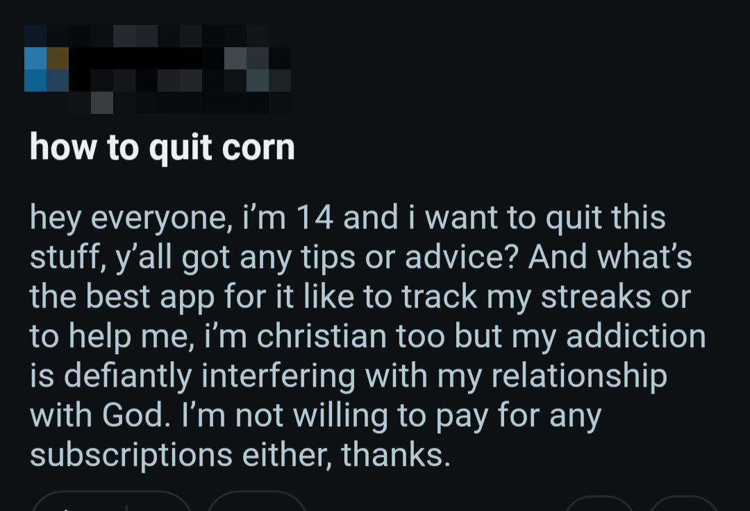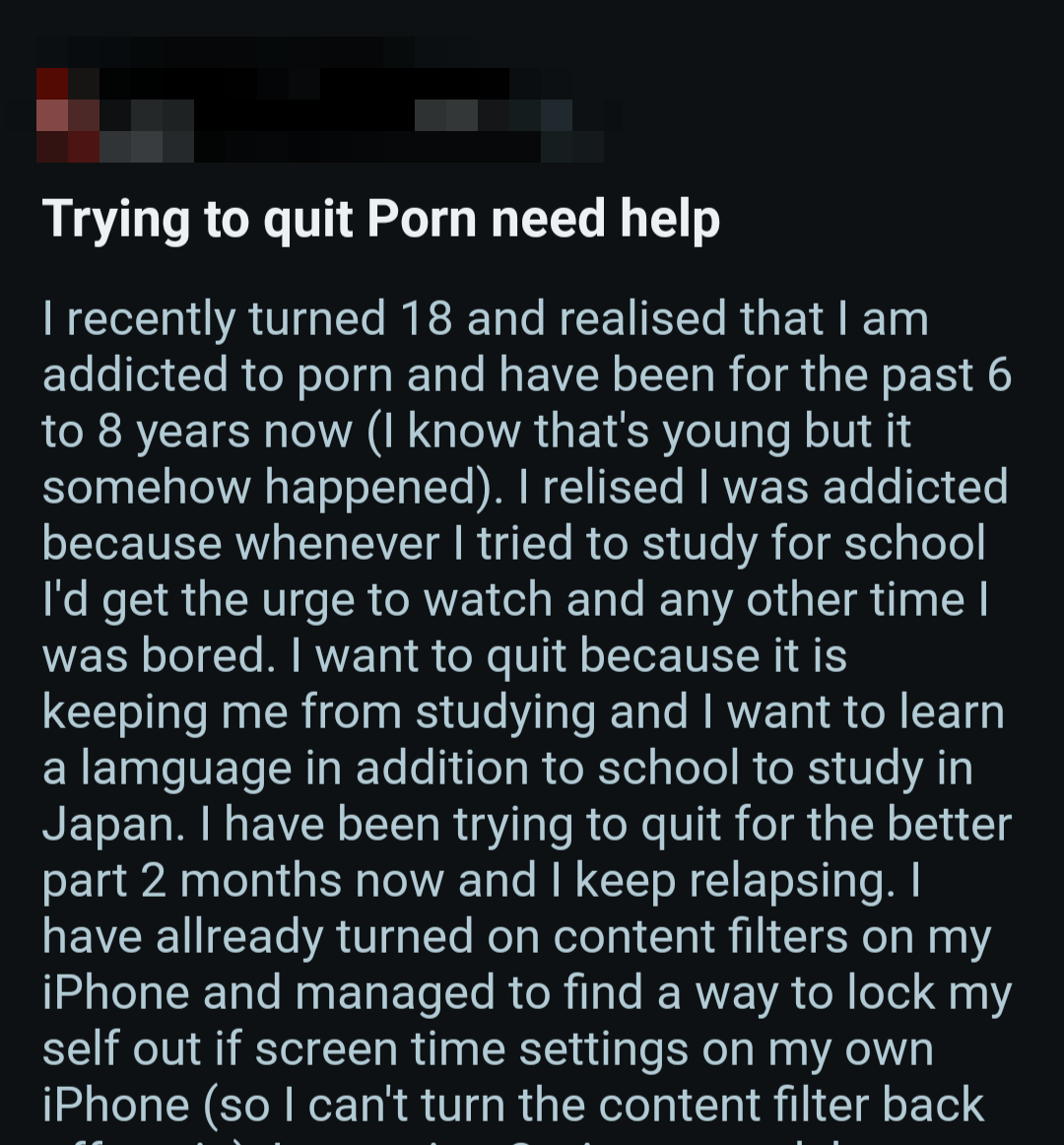 So once again, here's a bunch of screenshots from various Reddit outlets that detail the harms pornography does to them.