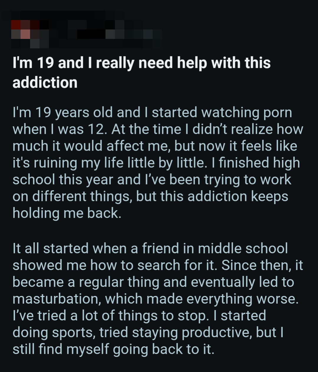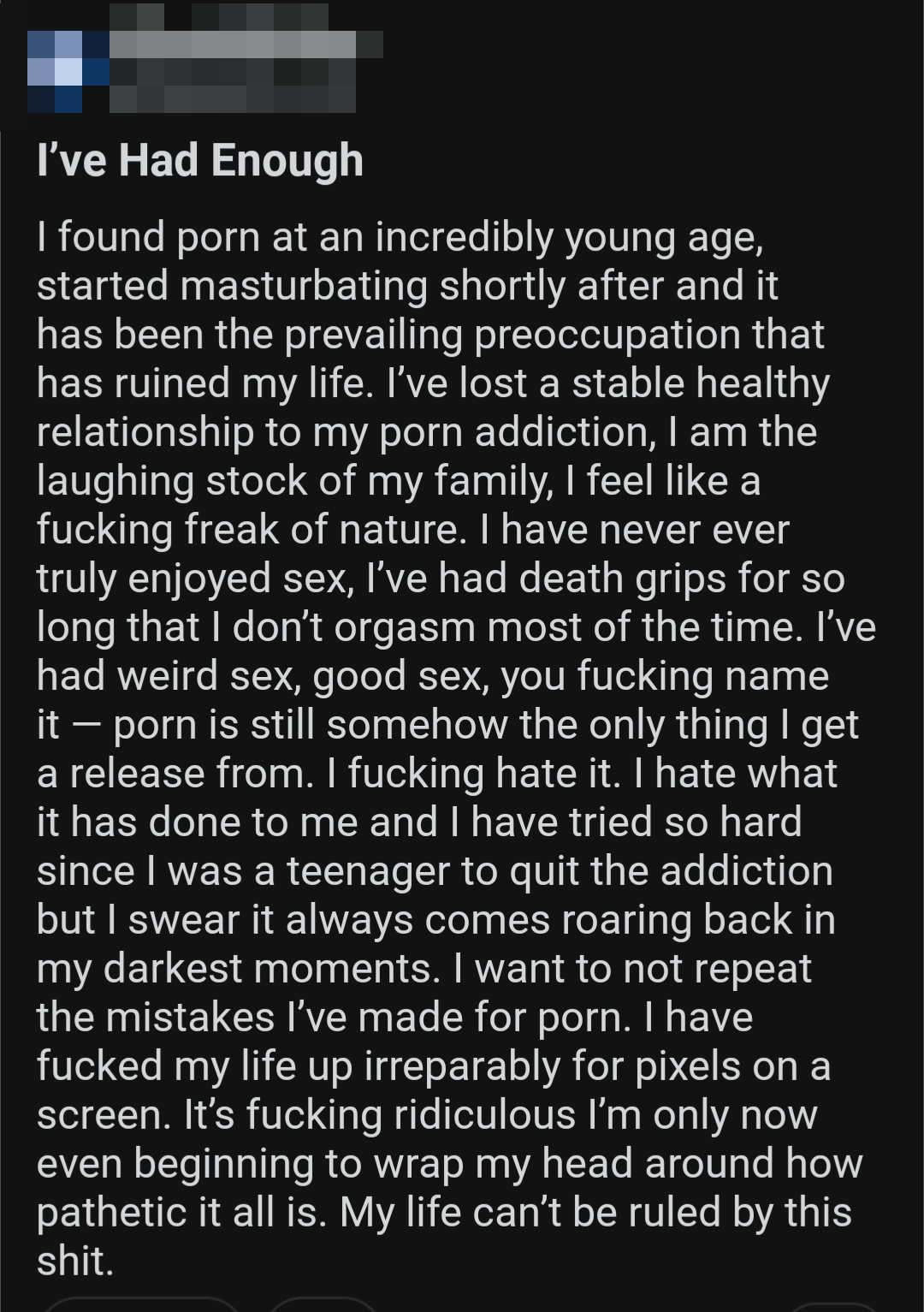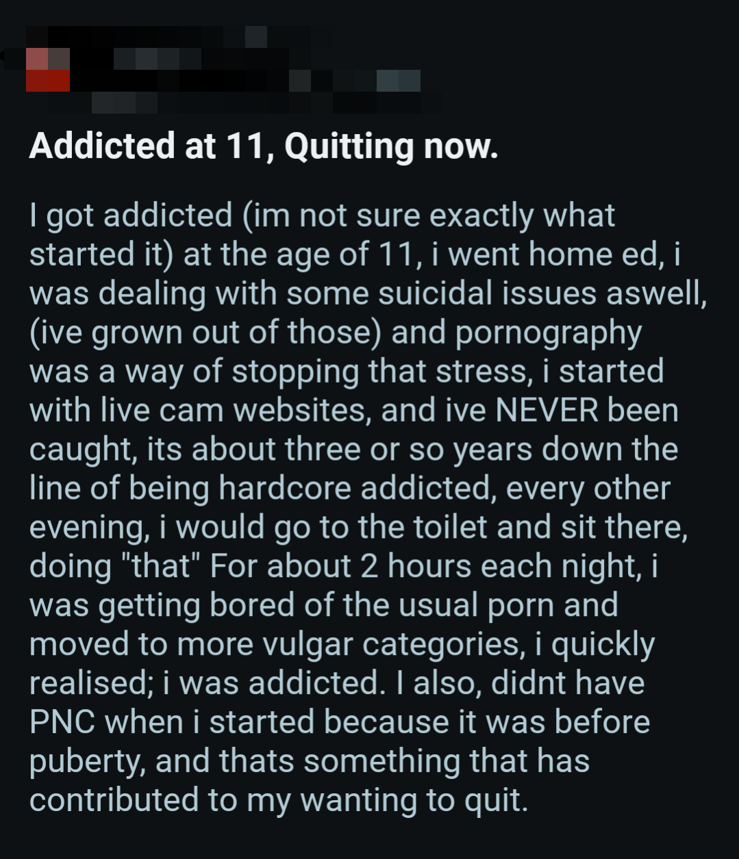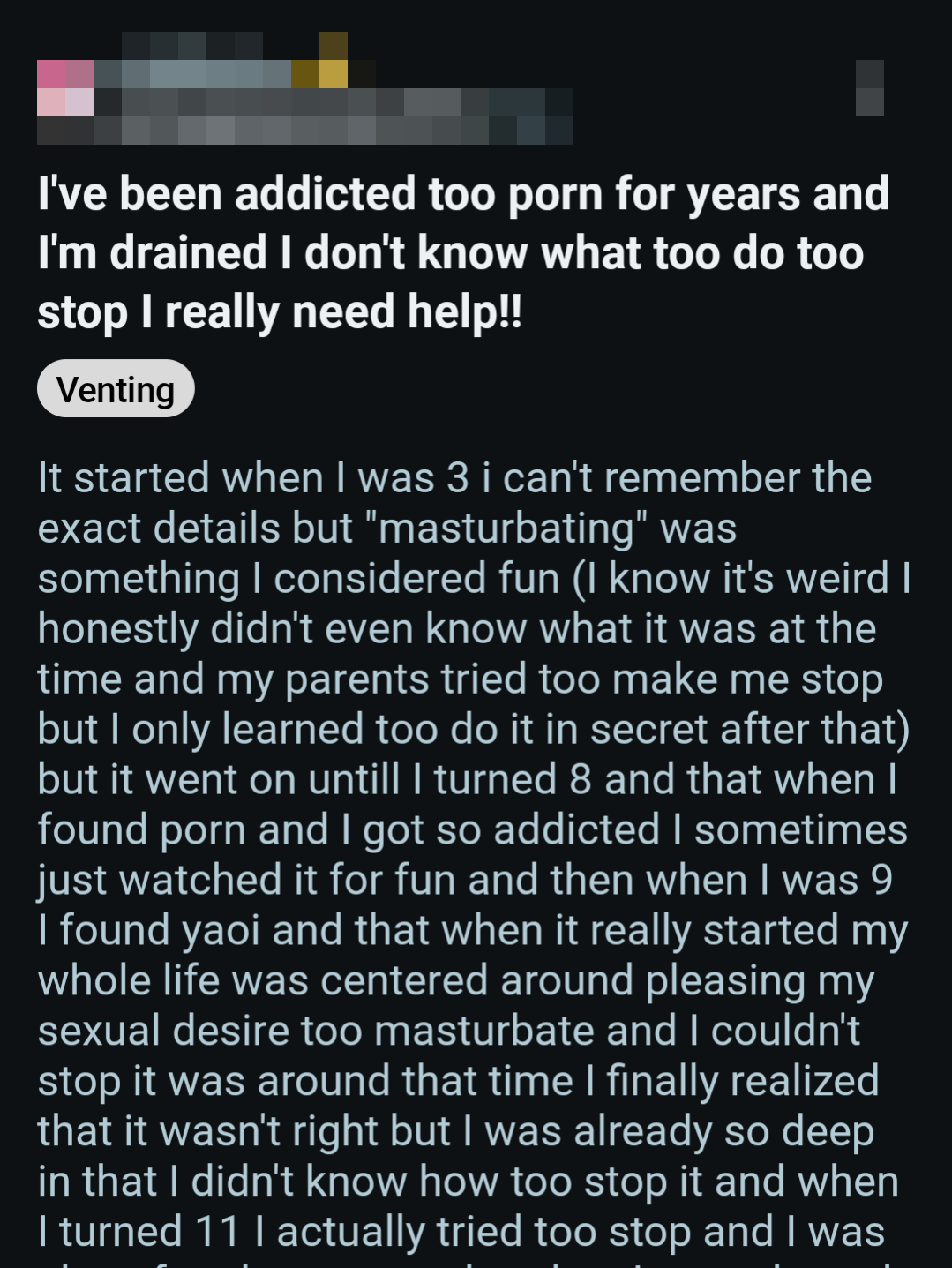 So once again, here's a bunch of screenshots from various Reddit outlets that detail the harms pornography does to them.