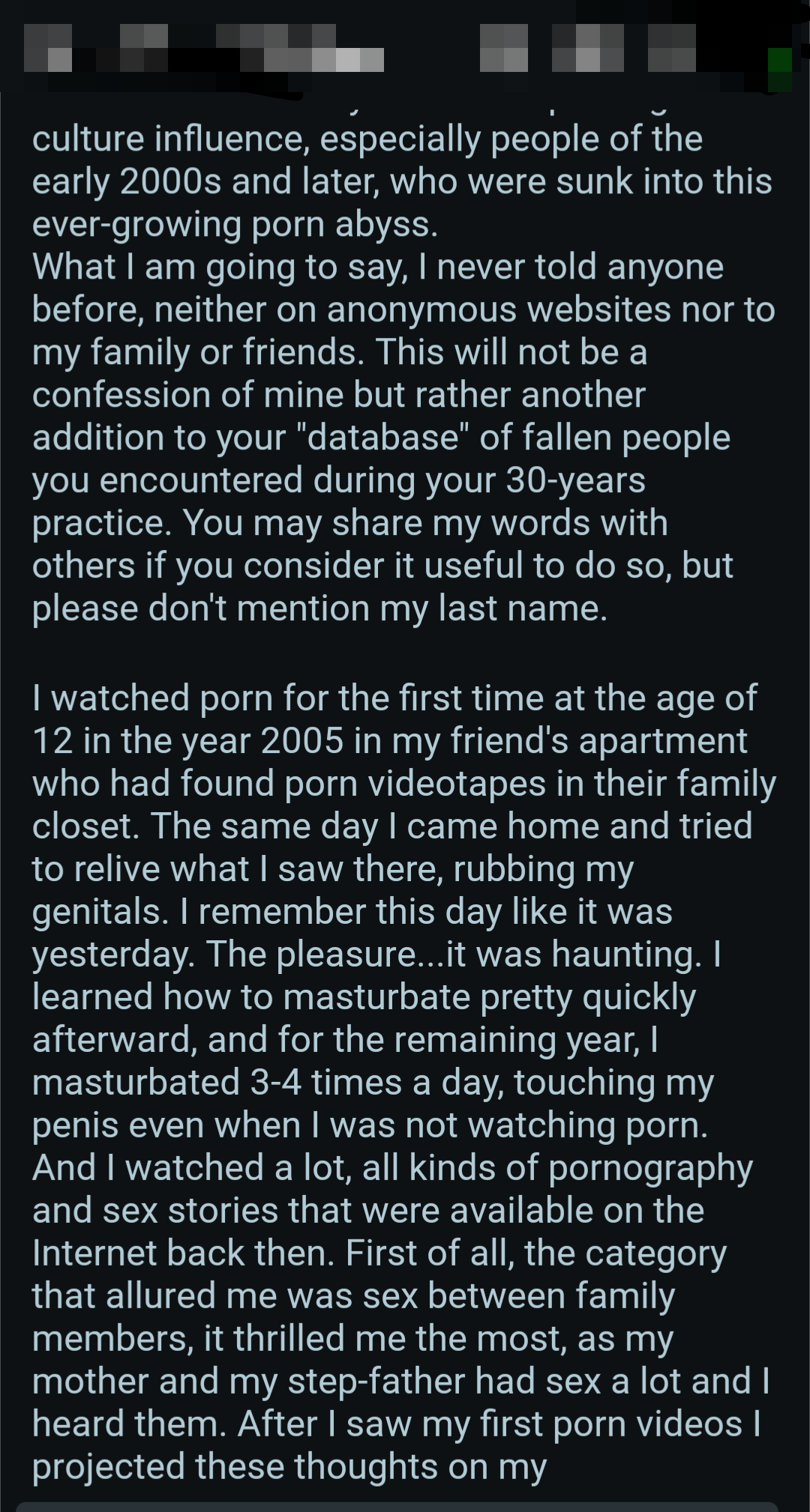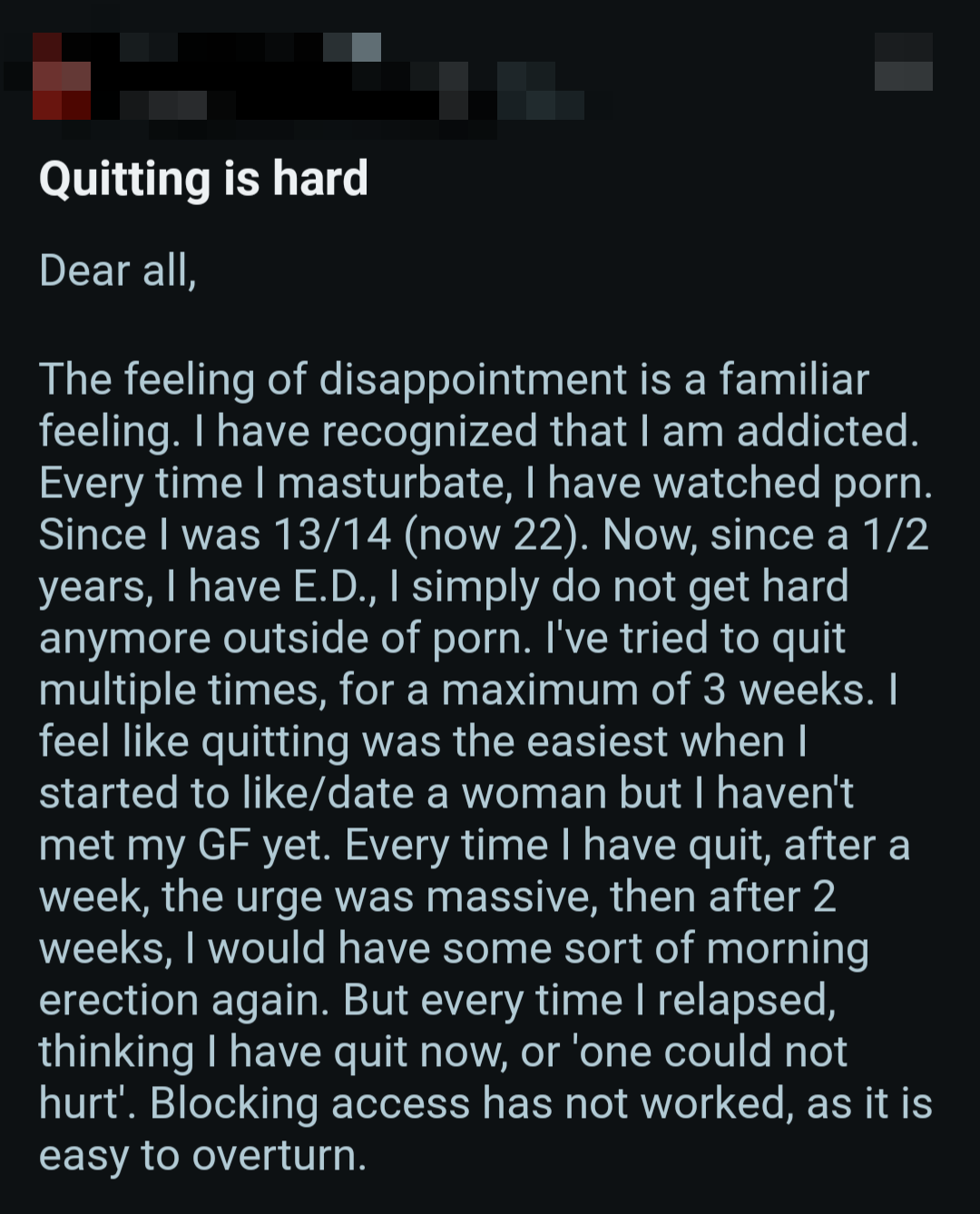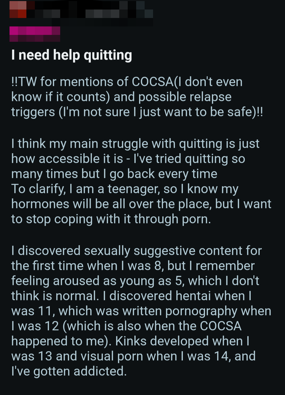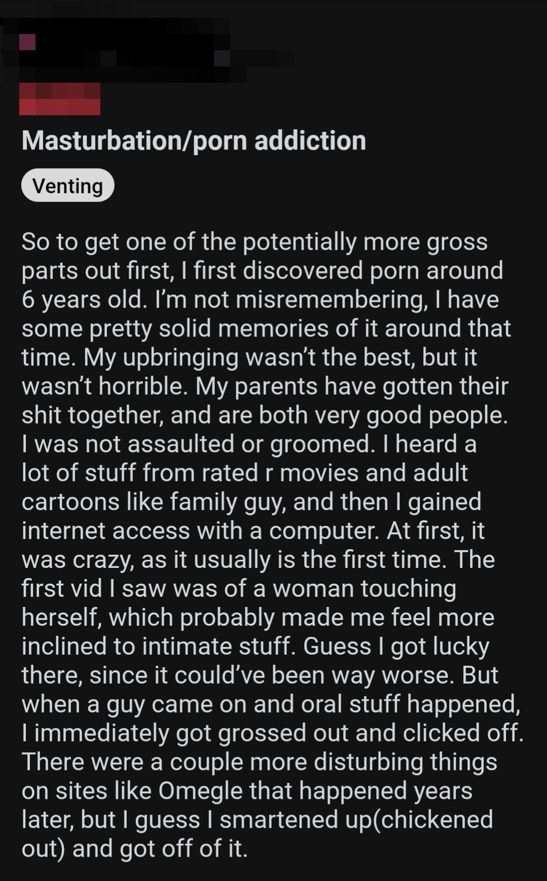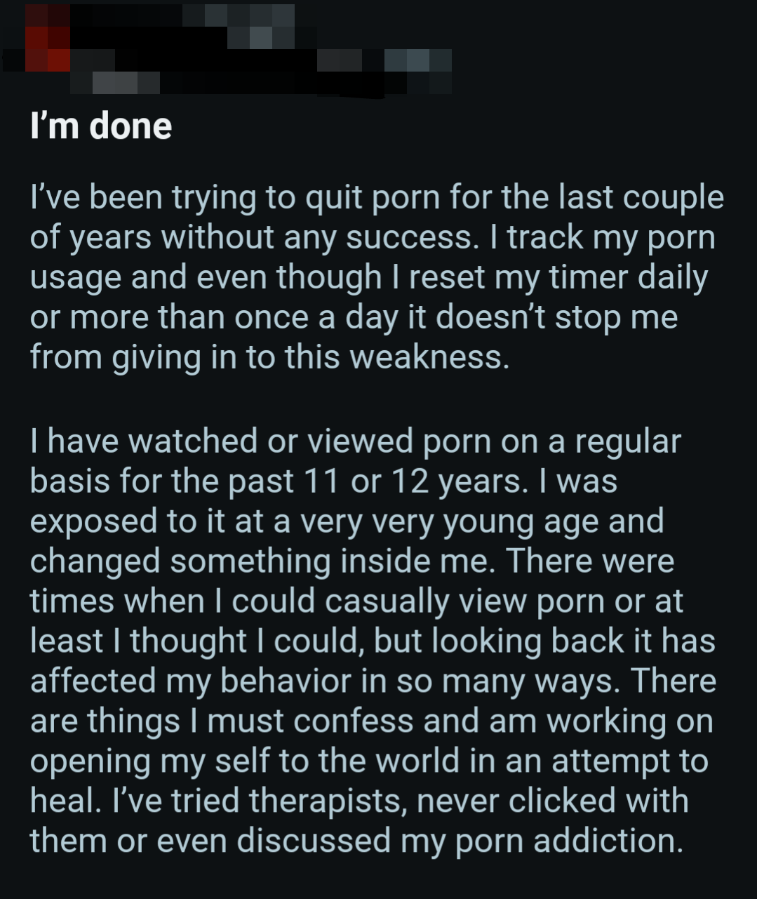 So once again, here's a bunch of screenshots from various Reddit outlets that detail the harms pornography does to them.